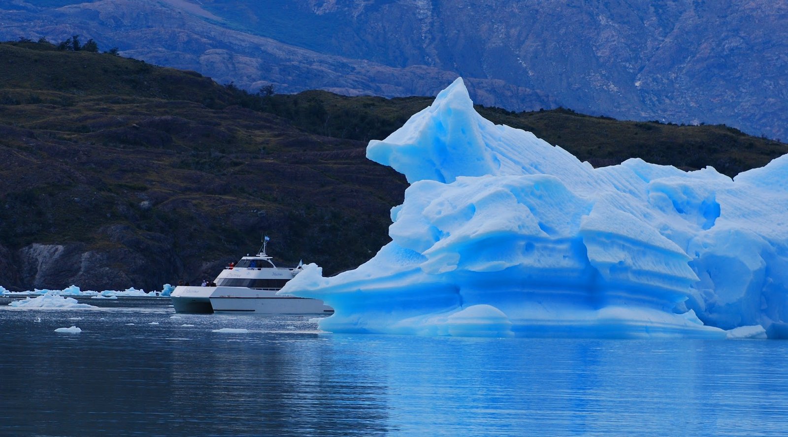 Continuamos navegando entre tempani de diferentes formas y tamaños hasta llegar al Canal de Upsala, uno de los puntos más llamativos del Parque Nacional Los Glaciares. Las montañas que rodean el lago crean un paisaje imponente, mientras que los icebergs revelan tonos que van desde el blanco hasta el azul más profundo.