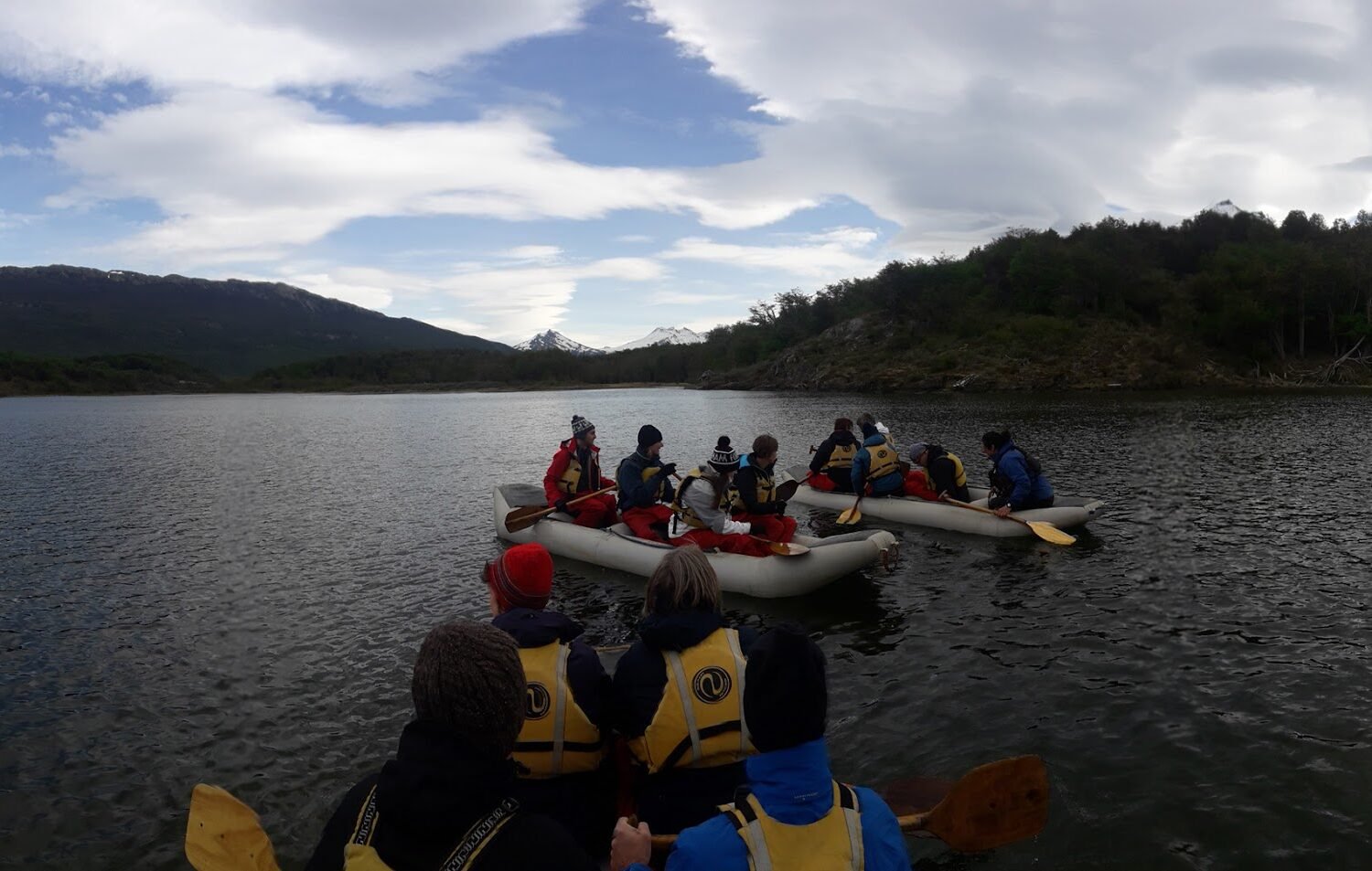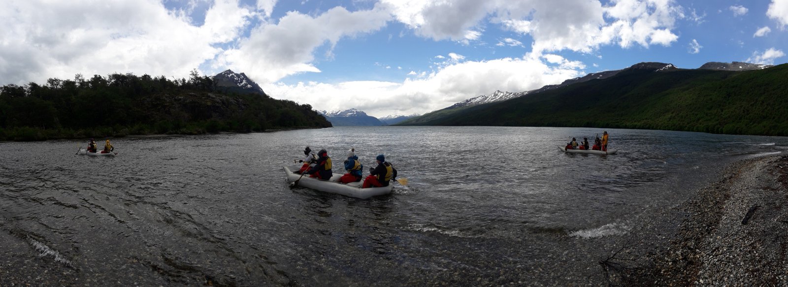 La navegación comienza en las frescas aguas del lago Acigami y continúa por los ríos Lapataia y Ovando, atravesando zonas inaccesibles por senderos y revelando una perspectiva única de la flora y fauna local. Durante aproximadamente una hora, el lento ritmo del agua lleva al grupo a la Bahía Lapataia, punto final de la aventura y uno de los lugares emblemáticos que marcan el final de la Ruta Nacional 3.
